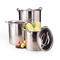 I wish I had looked farther at finding the specifications of how large they are I wanted at least a 16 quart these are 6, 8, 12 quart It may Not be as heavy as them made 50 years ago but Its okay. I bought It to distill Water (do Not use aluminum for that)and It looks like It going to work out. I only have used the 6 quart It brought what I was cooking to a boil and the handles stayed fairly cool.