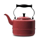 This is a sturdy, eye-catching tea kettle which promises to last a long time without getting bowed and unsteady at the base. Through use, cheaper kettles get rounded underneath and become unfit for ceramic cooktops which require flat-bottomed cookware. While the lid is snug needing some yanking to lift off, that is not necessarily a bad feature for those of us who have, when the lid was loose, poached our fingers with escaping steam. The kettle can easily be filled through the spout. The handle is securely attached and the grip elevated to avoid getting heated.