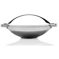 This wok has a beautiful design and high sloping sides like a traditional wok. The rounded cover gives enough room for placing a whole chicken in it! The seal on the lid is excellent where the lid has a large overlap with the pan itself and only a small hole to let out steam. Great for steaming! The 18/10 stainless steel is high quality.