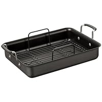 After having roasted a 16lb turkey in this pan, I worried about the clean-up. The pan sat for hours with the grease and stuffing residue before I was able to clean it. As I started to first rinse the pan, the whole mess just slid off. It was amazing. I was worried that the mess was baked-on and would need an over-night soaking, followed by vigorous scrubbing the next day, but the pan practically cleaned itself! I'm very happy with this roasting pan and would consider buying other nonstick Calphalon pans if needed.Item shipped and arrived very quickly and in good shape. This was a Christmas present and luckily I was home as it was shipped in the Calphalon box. Would be nice to have it shipped inside of another box or wrapped to hide the contents during the holidays.