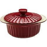 This is the size I wanted and at least it is not boring white or brown. I like the red, but I don't like the way the lid fits. It slides too much. That's really my main issue with it, but at least it has a lid! I like my food hot and I need a lid to keep it that way! I thought when I ordered it that I would not be thrilled with the "handles" and I was right. I ordered it anyway, because it was one of very few 1.5 qt casseroles and the best of what I saw. However, it works just fine for me, even if not absolutely perfect, and I would recommend purchase if you need this size (medium) casserole. If Paula Deen had made one at 1.5 qts (hers are 1 and 2 qts) I would have gotten that instead they are cuter and I love the Paula Deen 1 qt that I also ordered. However, Paula also does the brown (ugh) but fortunately does the green also and it is a pretty green. Well, next year the colors will no doubt be different. Sorta like the weather in New England it'll change pretty soon.