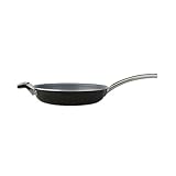 If you are looking for non stick this pan may be for you. The ceramic coating is great, nothing sticks and clean up is easy. However there are a few things I wish were better. The bottom of the pan has a black almost sprayed on finsh. I use this pan on a gas stove and moving the pan along the cast iron grates causes the black finish to become chipped. Also the pan seems to be raised in the center. If you place liquids in the pan the liquid slows off to the sides.Honest reviews on BergHOFF Earthchef Montane Frying Pan, 14.25-Inch