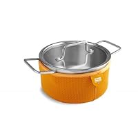 Food sticks to the bottom of the pot. I ordered this for cooking rice on it, and the rice sticks pretty bad. I make rice on a daily basis and it never stick using any other of my pots. The sleeve helps keep the food warm. I am keeping it because I really dislike returning things, but I am not ordering the other sizes which I was originally planning to do. I am dissapointed because I had a high level of trust on kuhn rikon products. I hope they just dropped the ball with this only item.