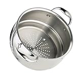 I really like this.It looks good and more expensive than what I actually paid for.I use it with my regular 3 qt and 4 qt saucepans.It fits perfectly and they are not from the Tramontina line.This thing is very, very nice. It drains well, steams well, and you can even make your potatoes for mashed potatoes in it. It is the Domus shape, particular only to the Tramontina brand, thus you will have to check the measurements to see if it will fit in your pan. I have Lodge's stainless steel pans and had to use this in the 8 quart stockpot. Didn't mind though it's such a nice pan and the shape is really pretty. Great pan for the smaller items you make not so much for spaghetti. It's a very easy cleanup, doesn't pit, and goes into the dishwasher quite easily. Now my potatoes don't have that "watery" taste even after they've been drained in a colander. Highly recommend!