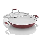 I was looking for a new everyday cooking pan with enough room to cook for two people. On the other hand, I did not want a huge pan that would take up the entire kitchen cabinet. I was looking at cast iron pans when I came across this particular pan. I loved the color of it immediately since it would go with my apartment. I also loved that it came with a lid and would not weight as much as normal cast iron pans would. The day I received the pan from Amazon I immediately opened the box, hand washed it, and I read the included materials. That night I made a quick stir fry and immediately realized this pan was not what I was hoping for. Not only did the dinner stick horribly to the pan but after cleaning the pan the white inside was brown and nasty looking. I was never able to get rid of the discoloring, and food sticks badly to the pan. I kept the pan hoping that it was my fault from not using enough oil or cooking spray, but no matter what I do the food sticks and does not cook evenly. I will be looking for a new pan soon to replace this one.