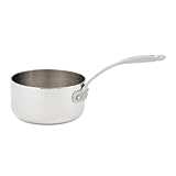 Heavy duty pan with comfortable handle. Have use several weeks now and love the way it cooks. Accidentally left the pan on with some hot dog sauce and rather than burn, it just slowly reduced the sauce. It was very inexpensive, a try me price, and I will be adding another piece or two of this line.