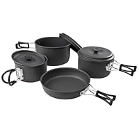 This is a sturdy compact camping cook set. The handles fold around the pots so that the pots and lids stack inside each other and fit into a travel bag. The handles are insulated so they can be handled without gloves. I am happy with this purchase.Wednesday, August 27, 2014