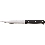 It's hard to go wrong with any Henckels knife. That said, I read other reviews and thought that this knife would be an improvement for cutting vegetables for my salads. Wrong. The serrated blade tends to shred mushrooms rather than cut them thinly, and my tomatoes, also fairly soft, get mushy in the cutting. So, for softer items, this knife loses a star with me. On the other hand, it slices firmer items just fine, such as bread, sandwiches, meats, onions and celery and semi-ripe avocados. Again, though, I had no luck slicing anything thinly with this knife. Here is information from the tag which is helpful: (1) micro-serrated edge; (2) heavy weight stamped; (3) triple riveted handles with stainless rivets; (4) fully visible tang construction; (5) breakproof, dishwasher safe (handwashing recommended); (6) made in Thailand; (7) contour black polypropylene handle and (8) fully guaranteed against defects in material and/or craftsmanship. The label also includes a website if you have other questions. I like the weight of the knife in general, and the handle is substantial, balanced and easy on my hand.In the event that there are any material problems with the knife, I know from personal experience that Henckels has a terrific guarantee. I recently contacted them about a paring knife that was over 25 years old with a bent blade. I mailed the knife back to Henckels, and they sent me a new knife; all I paid was the cost of the postage back to them; they gave me the new knife and paid the postage back. So, I already know that if this knife does not hold up over time, Henckels will stand behind their product.