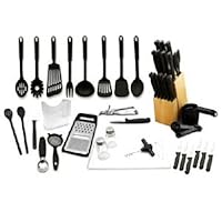 This little box has a bit of everything and most of it is pretty useful. The knives are sharper than I expected them to be but still invest in a sharpener because they dull quickly. All of the spoons and spatulas are pretty strong and there is one with an angle that is perfect for pancakes. The corkscrew, ice cream scoop and the peeler are all pretty delicate. I broke all three within the first use or so. There is no bug chopping knife and the scissors did start to stick after I washed them. All that aside it would be great for someone that is just getting into cooking.Best Deals for Hampton Forge 52-Piece Kitchen Starter Set