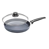 Woll's main catalogue for the USA claims that this pan has a 10mm thick bottom. It does not. It's more like 5 mm thick. It feels lightweight and cheap.As Woll states (see below), thicker pans distribute heat much more evenly, and thicker pans will not warp. Thinner pans always seem to warp quickly, even if you religiously avoid temperature shocks and cook only on medium, and a warped or distorted pan is a problem on a glass top. Warping and heat distribution are issues for me. I wanted a thick pan. I will return this pan for the titanium, which is claimed to be 8 mm thick.