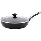 I had high hopes for this skillet: deep, with a clear glass lid, and nonstick. Unfortunately, the bottom warped when I had it on low heat on my glass cooktop stove. This meant it was no longer in contact with part of the burner. It's going back. I have a great Farberware 12" nonstick skillet (with no lid) that is shallower and heavier; it is the "Classic Stainless Steel" but the nonstick coating was wearing off. I can't find the pan anymore although it's not that old.