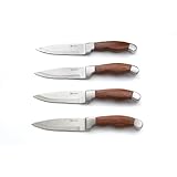 This is a well-balanced, serrated, steak knife with a wooden handle. It is quite substantial meaning very heavy. The wooden handles are not sealed so I would suggest washing these by hand and oiling the handles until they season. They slice well and are perfect for the larger cuts of meat. I think these knives were heavier than I anticipated but in terms of length, in line with other steak knives on the market. They are definitely worth what was charged. I am giving them 4 stars because they are a bit on the too heavy side, but that is really my taste. This is where on-line shopping is a disadvantage as I have never seen these knives anywhere else so there was no way of knowing how they felt in hand.Solid and impressive. Enhances the steak eating experience. Nice looking and a nice weight and handling in your hand. Do not hesitate to buy.