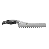 This is why I love it: I can line up 5 cherry tomatoes, and with ONE move downwards, chop them all in half!! No tomatoes escaped, slipped, moves, I just had 10 perfect halves! Now, that is both sharp and useful!!! Besides, it cuts beautifully through everything soft, buns, fruits, whatever, with zero effort and no need to go back and forth. And the handle is SUPER comfortable. Absolutely love it!