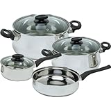 I had a stainless steel pan set for several years and the bottoms were wearing out, so I was looking for an inexpensive replacement for a few of them. This set was exactly what I was looking for. Although it's rather lightweight, it does a good job and looks nice with the see through lids.