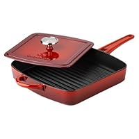 After owning this pan for more than a month, I learned few more things about iron cast pans. Apparently, it's not wise to soak the pan in water so I wash it in running warm water and use a scrub to wash it after it's cooled now. The pan does seem to require seasoning after use. I noticed few rust spot after first few uses without proper caring. Grilling with this pan is fun, but the caring part is not so fun.This grill pan is fabulous. Heavy cast iron, beautiful color, and easy to clean. Grilled fish, burgers, and steak all perfect.